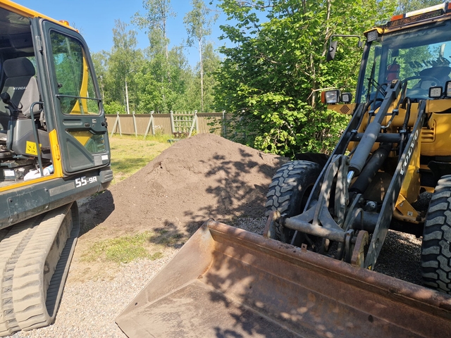 Vi hanterar även bortforsling av överflödig jord och annat material från byggplatsen. För att säkerställa en kostnadseffektiv lösning ser vi alltid om det finns en annan del av tomten att fylla ut i första hand, för att återanvända så mycket rena schaktmassor vi kan, för att undvika onödiga transporter och spara pengar åt dig.